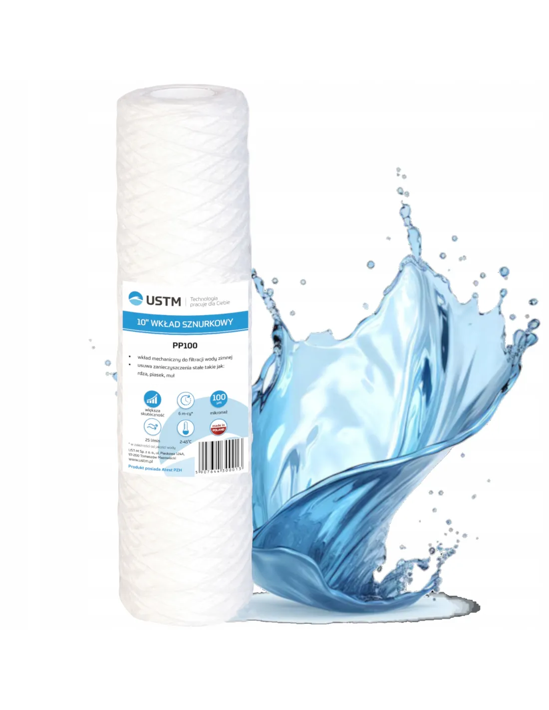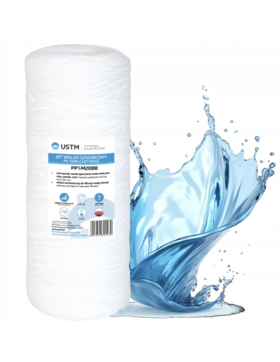 Filtr do wody wkład 10 sznurkowy filtrujący 5 mikron PP5 Ustm