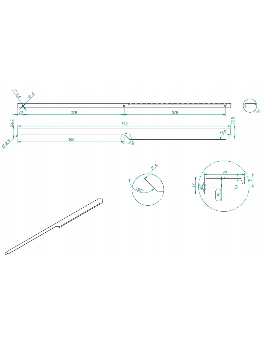 - Rozmiar/wymiar: 798 x 40 x 17 mm