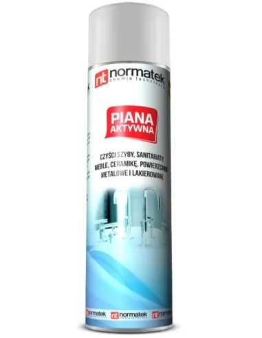 Aktywna piana to uniwersalny i skuteczny środek czyszczący do wielu powierzchni. Posiada wielorakie zastosowanie zarówno w motoryzacji, pracach domowych, jak i zakładach przemysłowych. Pianka z łatwością usuwa trudno schodzące zabrudzenia w tym: osady spowodowane dymem, tłuszcz, wosk, martwe insekty, resztki gumy oraz kleju. Można ją stosować na powierzchniach metalowych, szklanych, drewnianych oraz z tworzyw sztucznych. Czyści plamy z dywanów, tapicerki, tapicerki samochodowej, sprzętu sportowego nie niszcząc ich. Aktywna piana znakomicie się sprawdza do mycia szyb samochodowych, jak i szyb okiennych, powierzchni ze stali nierdzewnej, zwłaszcza w gastronomii i pomieszczeniach sanitarnych oraz wszelkiego typu ceramiki. Pianka w sprayu nie cieknie z pionowych powierzchni, nie pozostawia smug, plam i poświaty, a co najważniejsze jest szybka w użyciu. Preparat nie zawiera substancji żrących i ma przyjemny zapach. Ponadto nadaje świeży wygląd matowym i zwietrzałym tworzywom sztucznych.