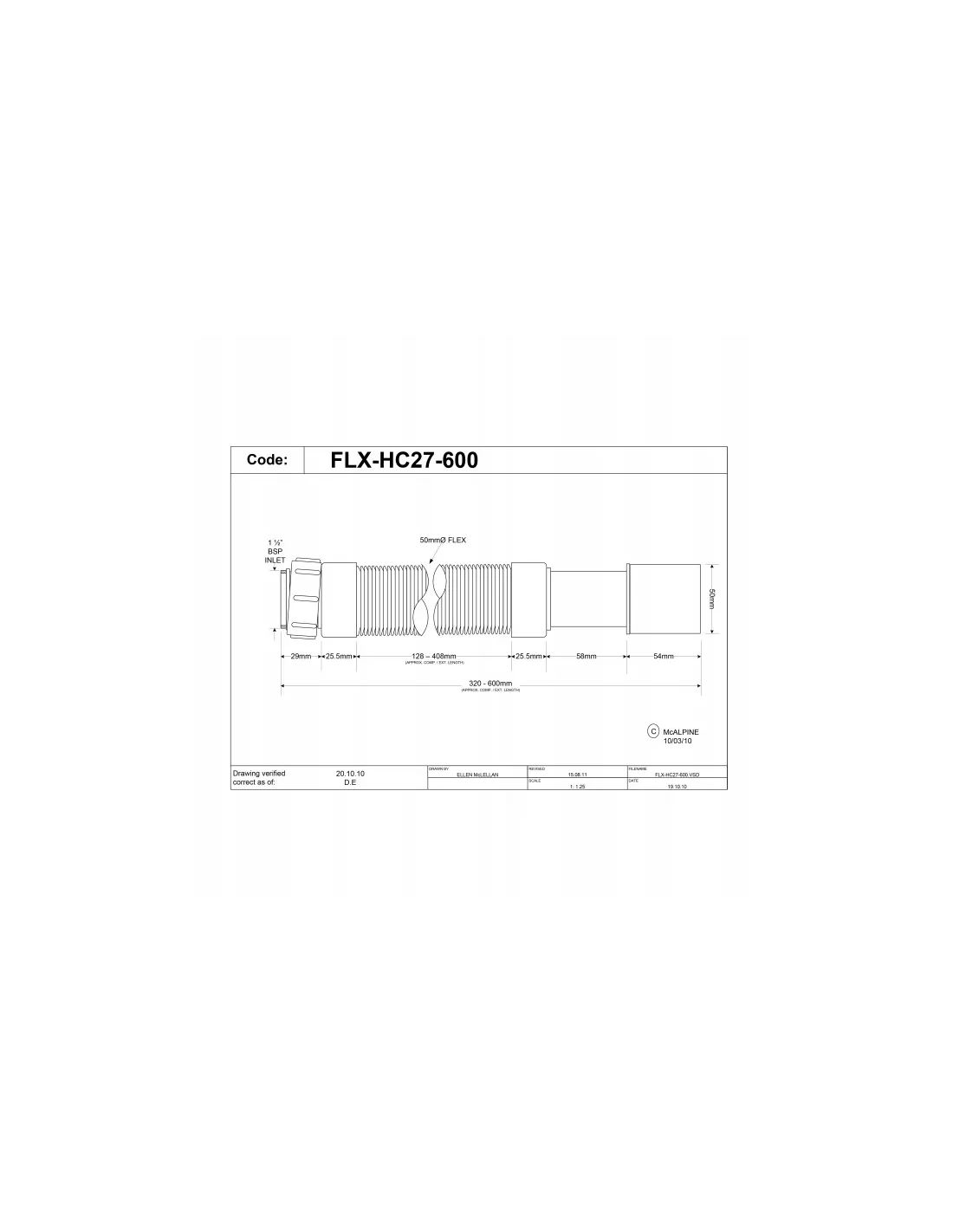 Syfon zlewozmywakowy McAlpine 110 mm FLX-HC27-600MM