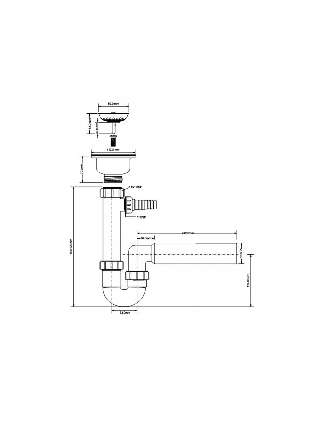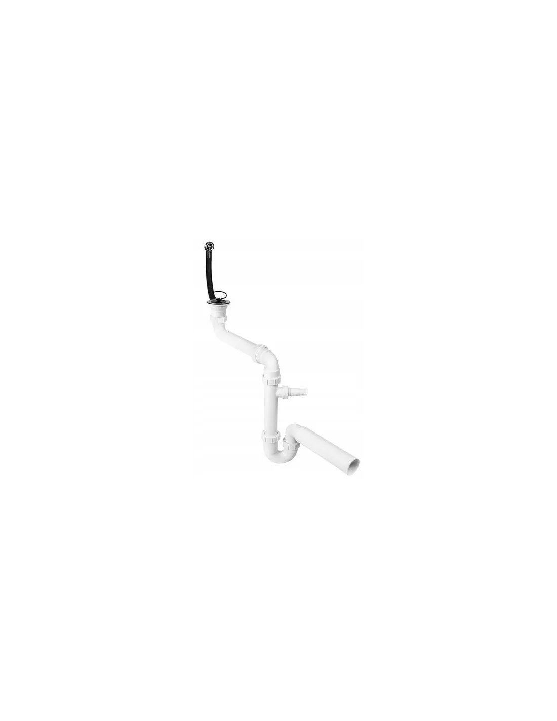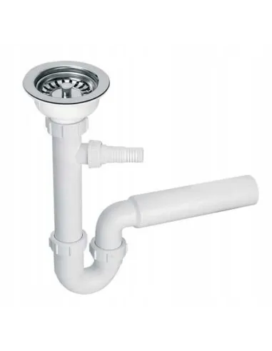 Syfon zlewozmywakowy rurowy 1.1/2x50mm ze spustem 1.1/2x70mm z przelewem okrągłym, z podłączeniem do pralki lub zmywarki, z przedłużką umożliwiającą wykorzystani przestrzeni pod zlewozmywakiem. Dostępna opcja z przelewem prostokątnym.