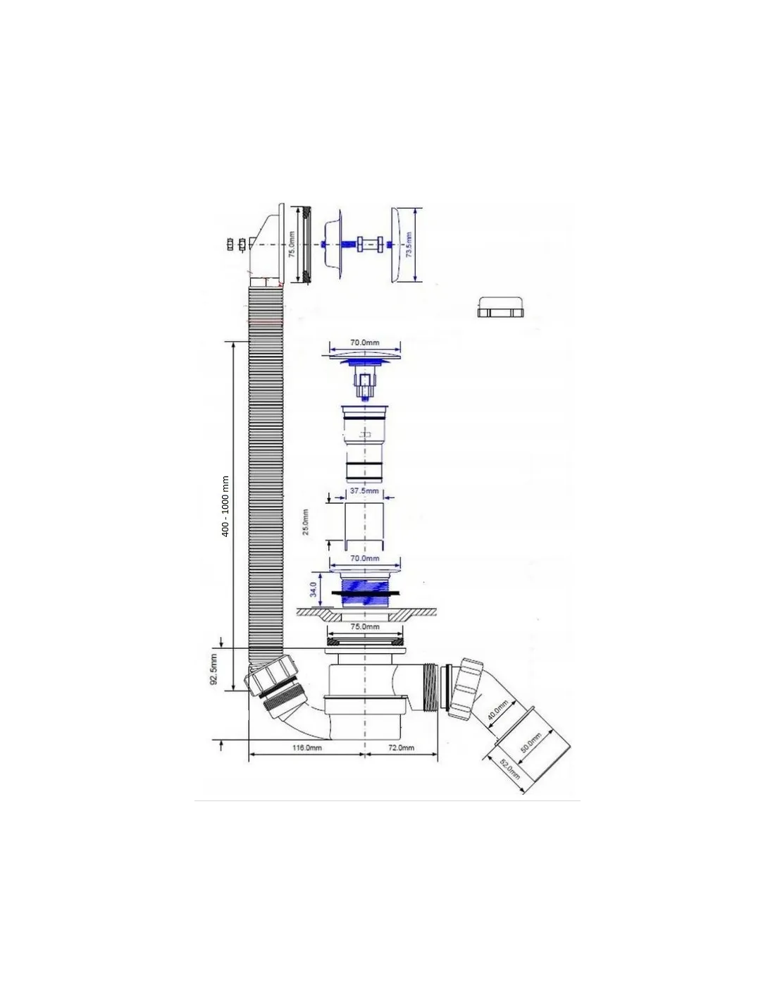 Syfon wannowy czyszczony od góry profesjonalnej angielskie firmy McAlpine