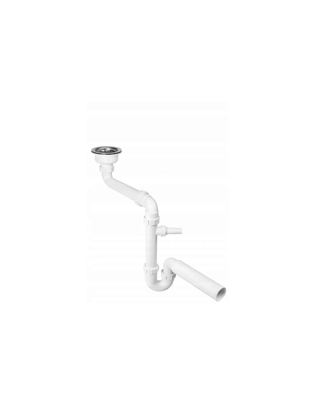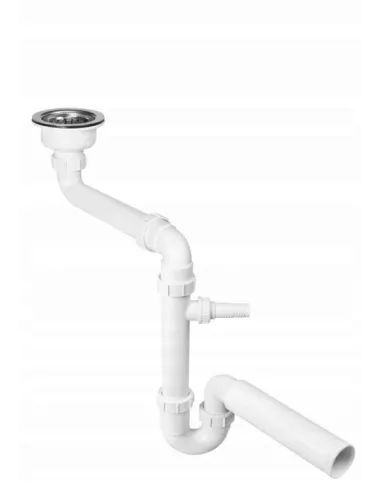 Syfon zlewozmywakowy rurowy 1.1/2x50mm ze spustem 1.1/2x113mm, z podłączeniem do pralki lub zmywarki, z przedłużką umożliwiającą wykorzystanie przestrzeni pod zlewozmywakiem.