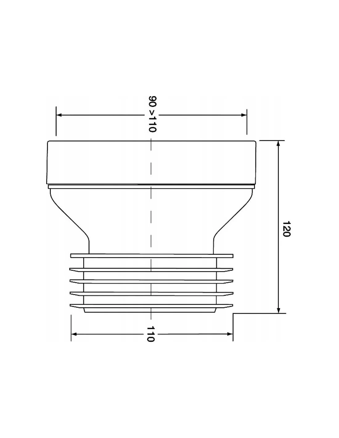 Wejście 90-110mm z uszczelką wargową, wyjście 110mm z uszczelką kołnierzową.