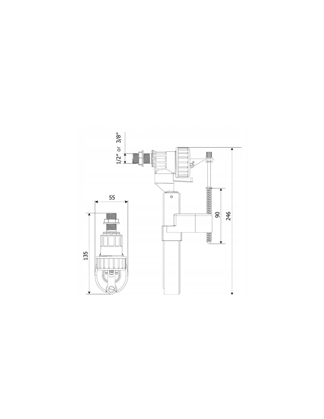 Typ: zawór napełniający boczny do spłuczek WC, przeznaczony do montażu w zestawach podtynkowych, natynkowych oraz kompaktach WC.