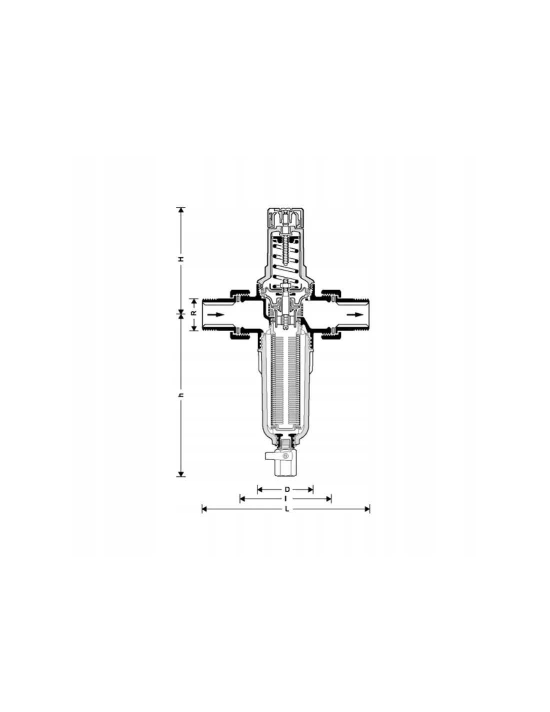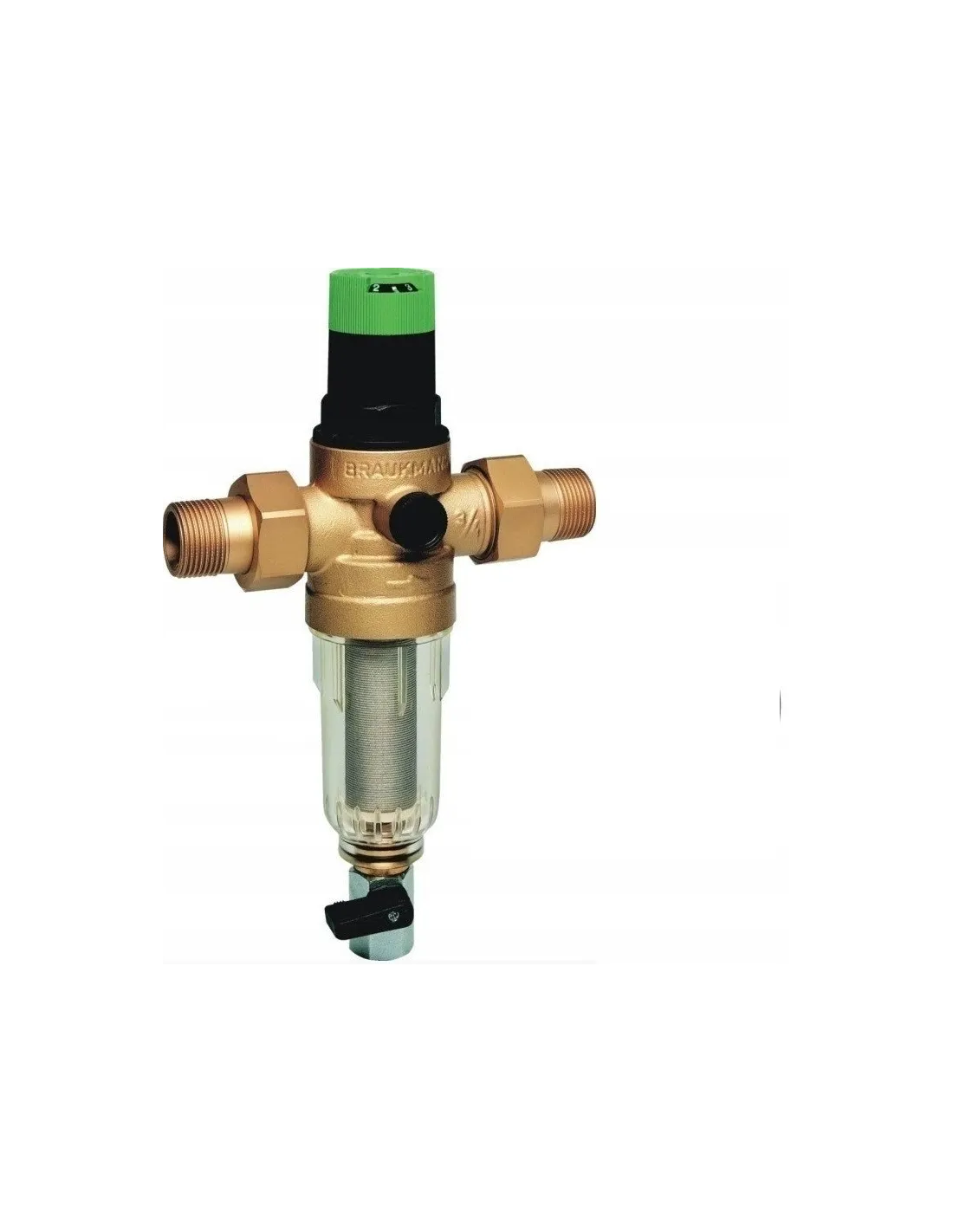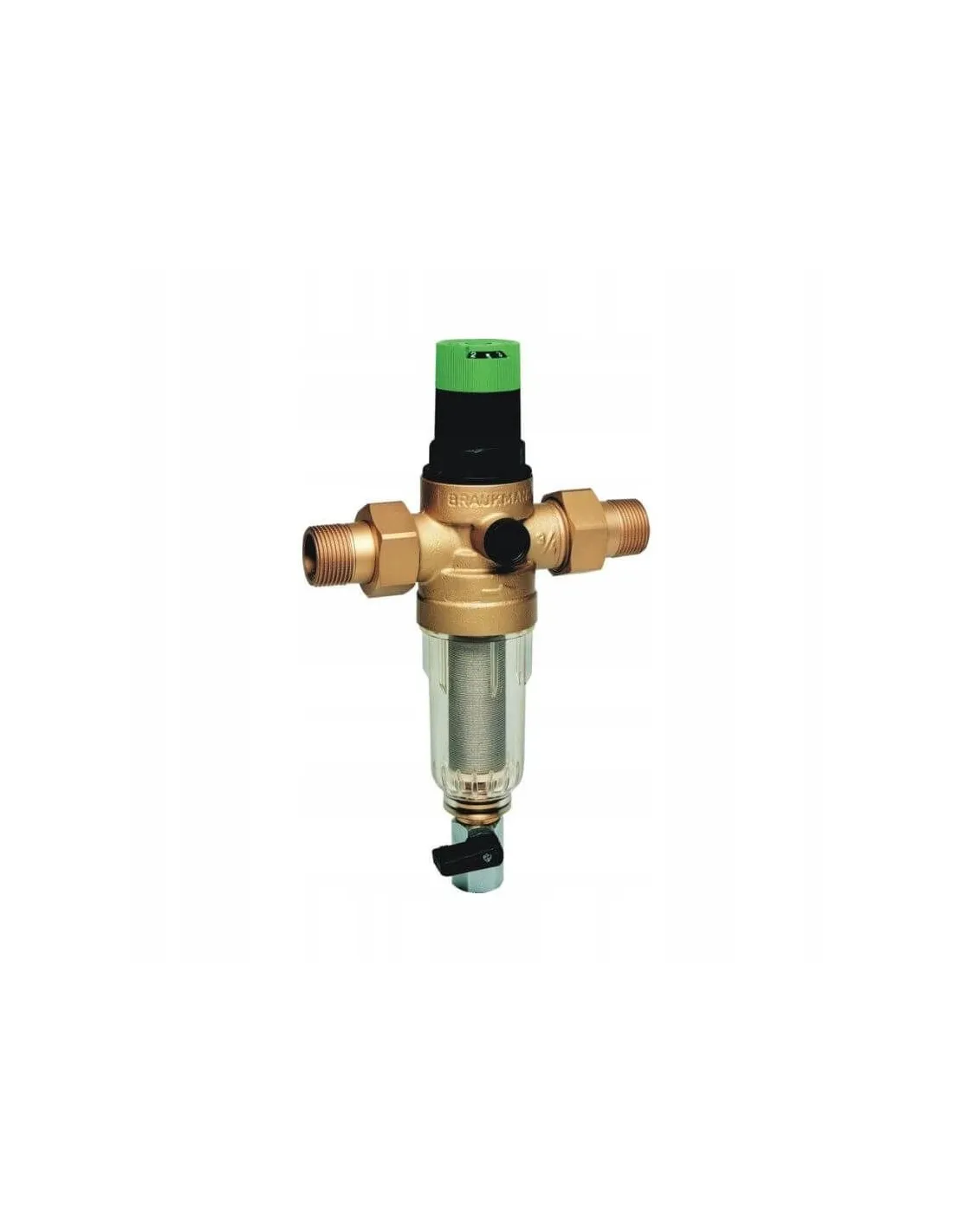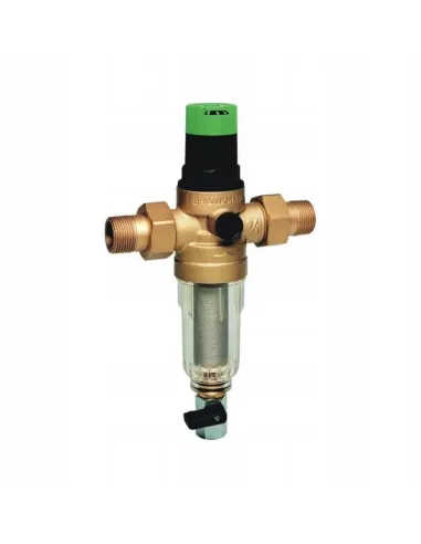 Filtr ten zapewnia ciągłe filtrowanie wody zatrzymując na siatce filtracyjnej zanieczyszczenia tj. rdza, piasek, strzępy konopii itp. Otwierając zawór kulowy w dolnej części obudowy zanieczyszczenia gromadzone na dnie usuwane są na zewnątrz filtra. Zabudowany regulator ciśnienia zabezpiecza instalację przed skutkami zbyt wysokiego ciśnienia oraz przyczynia się do zmniejszenia zużycia wody. Ze względu na niewielkie rozmiary filtr może być zastosowany tam, gdzie jest mało miejsca do zabudowy.