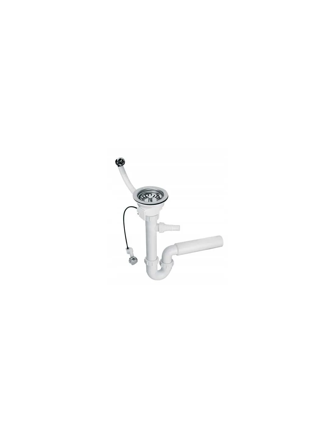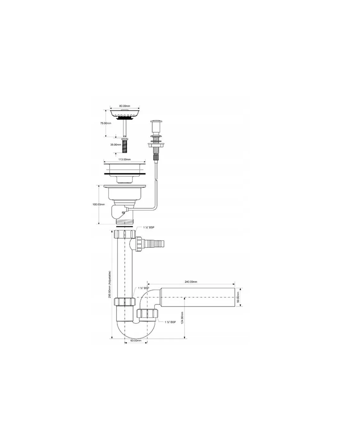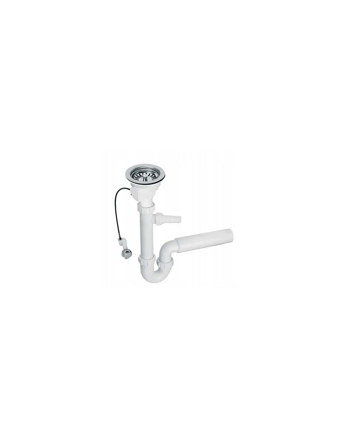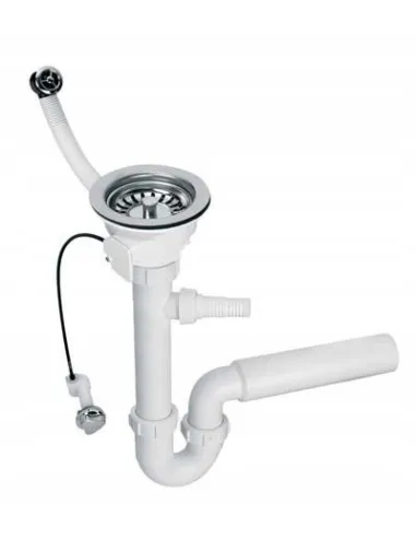 Syfon zlewozmywakowy rurowy 1.1/2?x50mm z podłączeniem do pralki lub zmywarki i odejściem poziomym 50mm. Spust 1.1/2?x113mm z korkiem automatycznym.