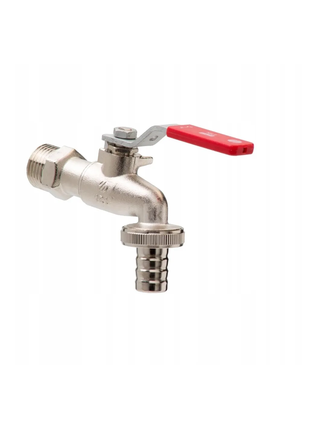 Zawór czerpalny zewnętrzny 3/4 x 1, uchwyt rączka, przeznaczony do instalacji wody zimnej, instalacji wodociągowych, wody ciepłej, posiada zabezpieczenie w postaci dławicy.
