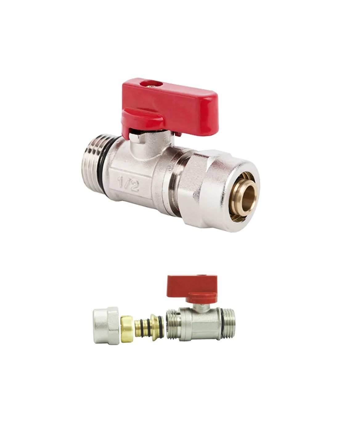 MINI zawór do rur wielowarstwowych, 1/2GZ 16, czerwony