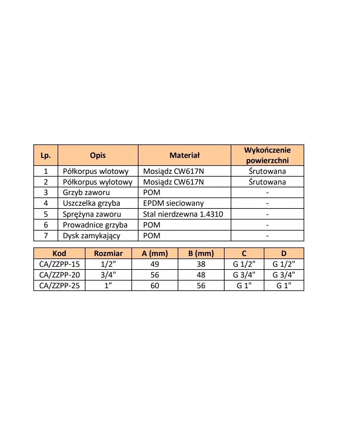 Energooszczędny zawór zwrotny grzybkowy PIONIER antykamienny 1/2\