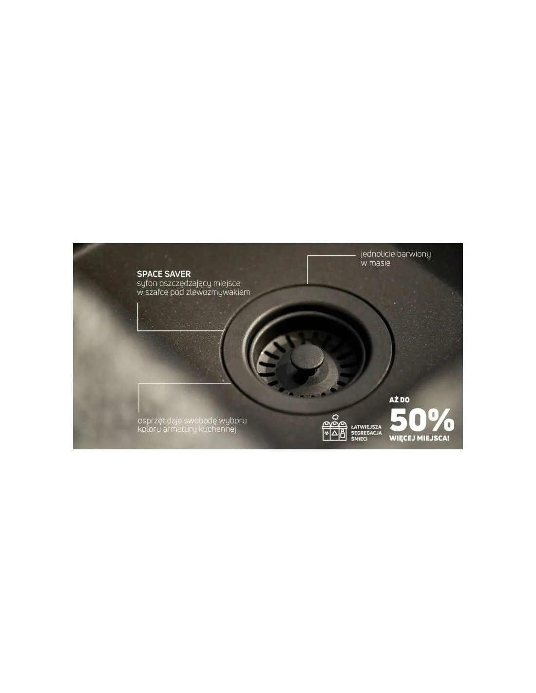 .................Syfon Space Saver do zlewozmywaków granitowych 1-komorowych czarny.......................