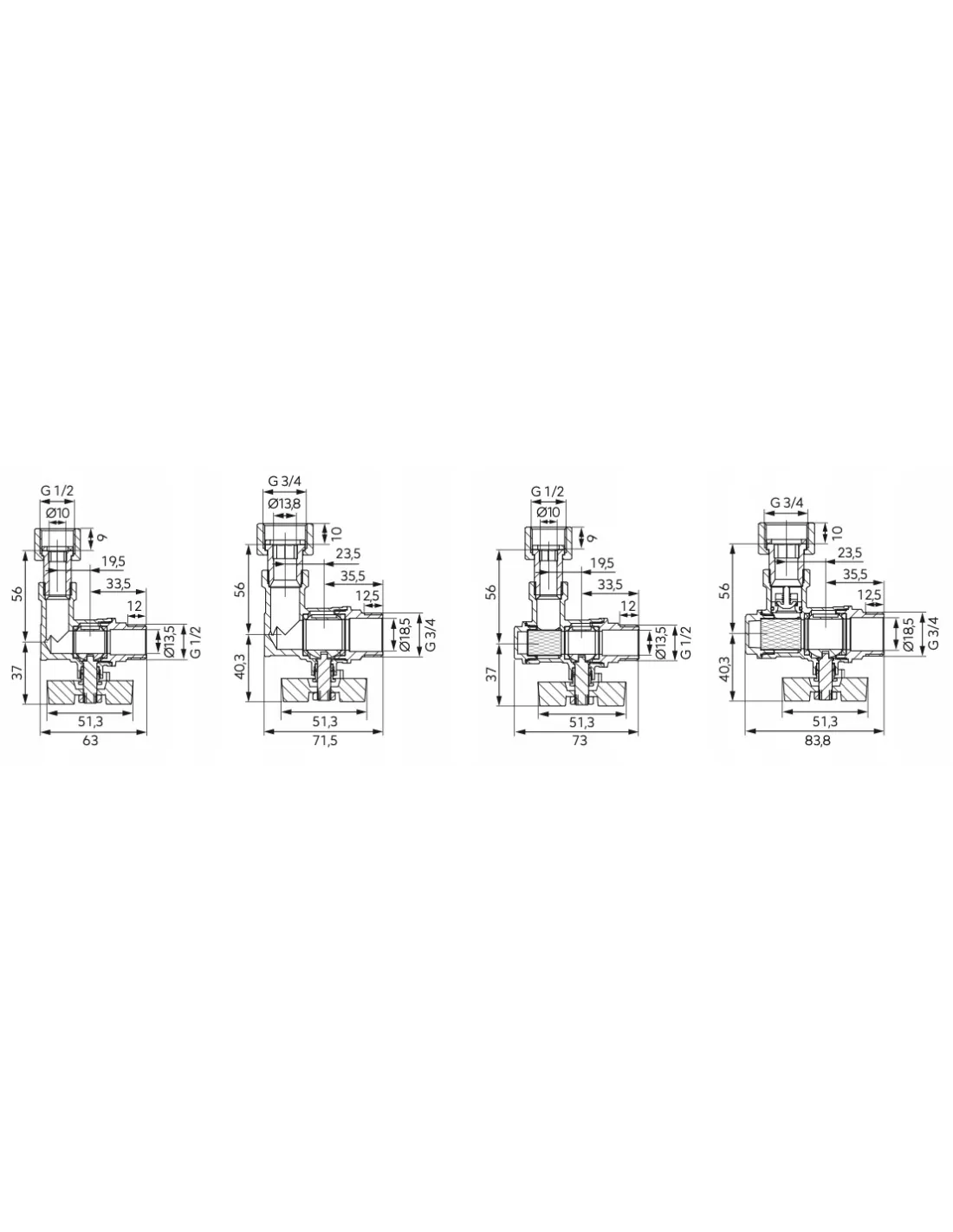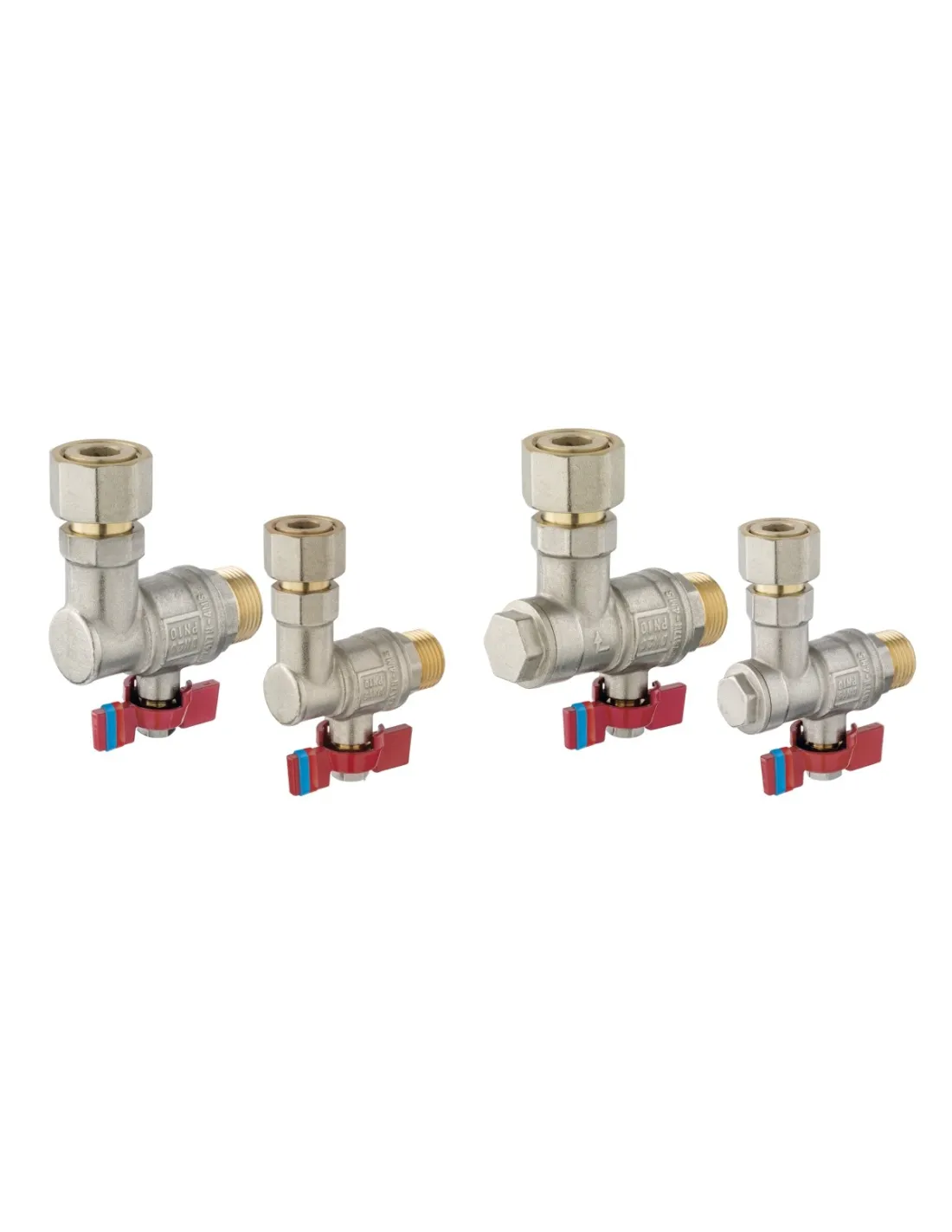 • 4 zawory kulowe kątowe z półśrubunkiem: