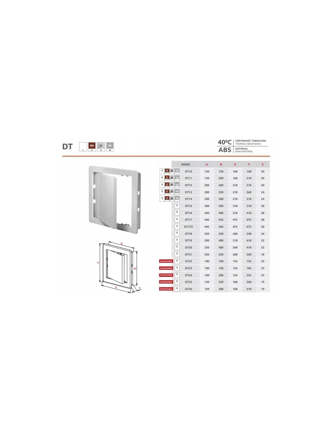 Chronią przed inwazją gryzoni. Zapewniają estetyczne wykończenie otworu zarówno na ścianie pokrytej tynkami tradycyjnymi czy pokrytej płytkami ceramicznymi.Drzwiczki rewizyjne z serii DT wykonane są z tworzywa ABS. Można je montować w łazience , kuchni lub pokoju. Łatwe w montażu.