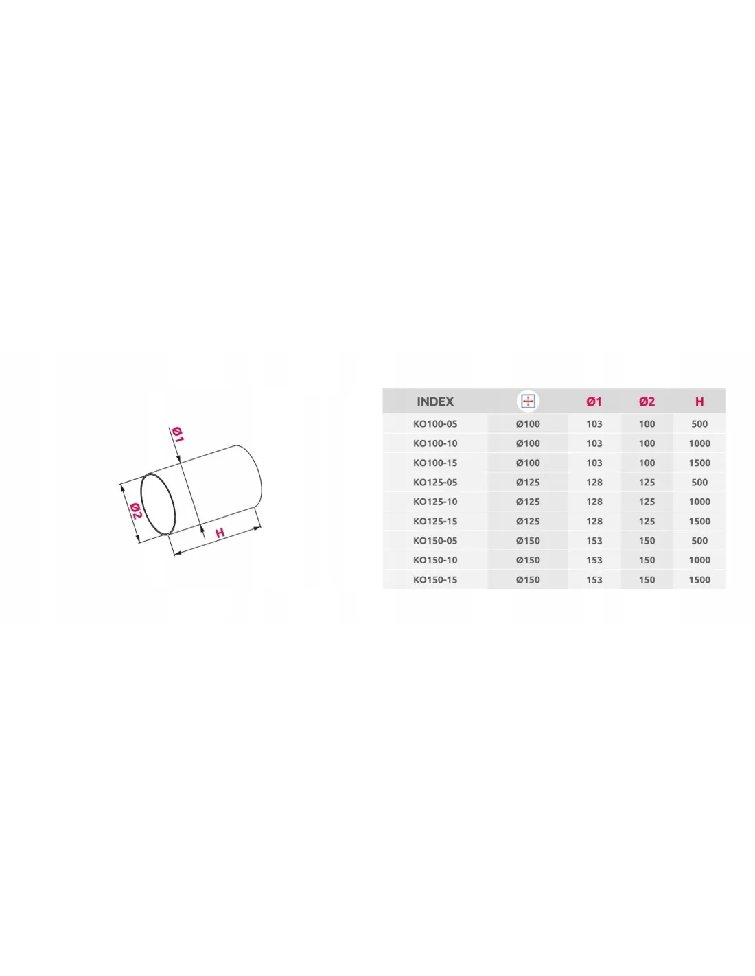 Są to trzy systemy okrągłe ?100, ?125, ?150 mm oraz cztery systemy płaskie, o wymiarach 55 mm x 110 mm, 60 mm x 120 mm, 75 mm x 150 mm i 60 mm x 204 mm.