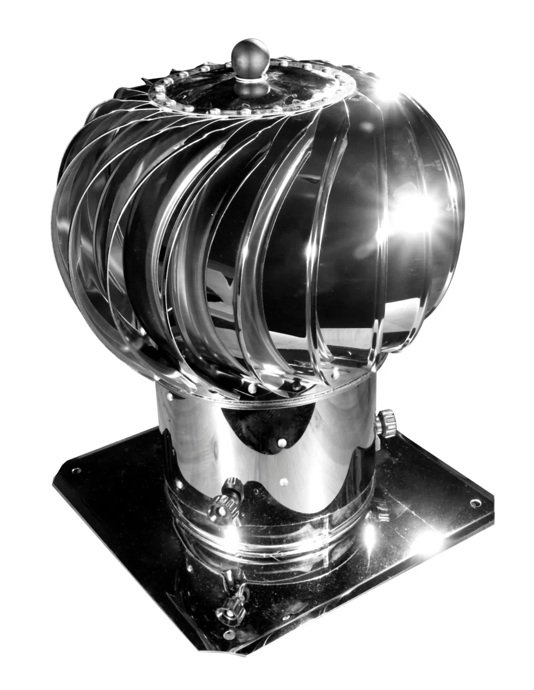Nasza nasada posiada specjalne nakrętki na tulejce, dzięki którym łatwo można ją ściągnąć do czyszczenia komina - jest to bardzo wygodne rozwiązanie, ponieważ nie trzeba odkręcać zakotwionej podstawy z czapy komina. Ta metoda, daję również możliwość montażu bezpośrednio do rury kominowej - ściągamy podstawę i kulę wciskamy do rury.