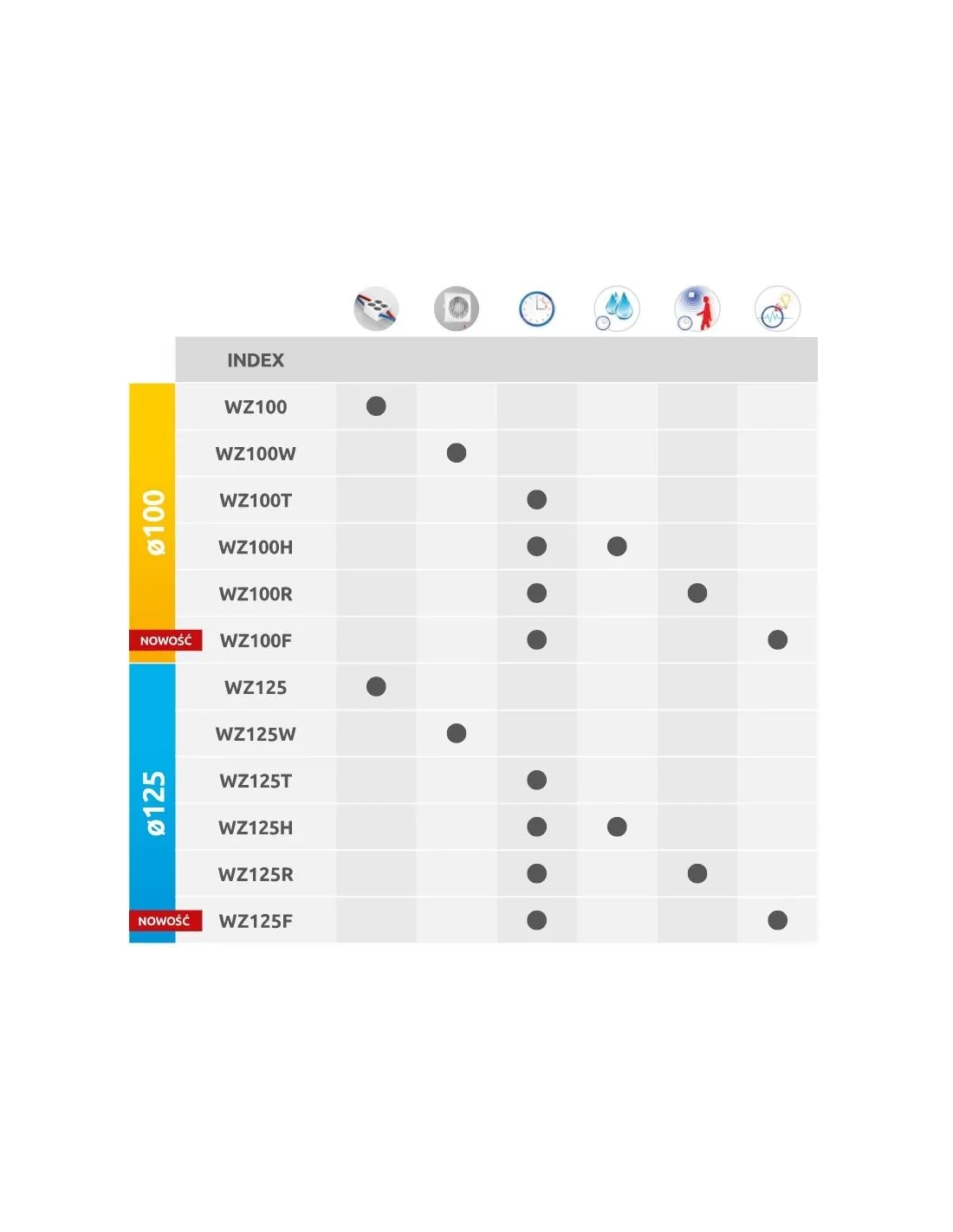Wentylatory wyposażone w czujnik wilgoci i opóźnienie wyłączenia. Czujnik wilgotności powietrza wykrywa wilgoć w zakresie od 40% do 90% wilgotności względnej. Wentylator – w zależności od sposobu podłączenia do sieci – może być uruchamiany tylko automatycznie bądź również manualnie przez użytkownika.