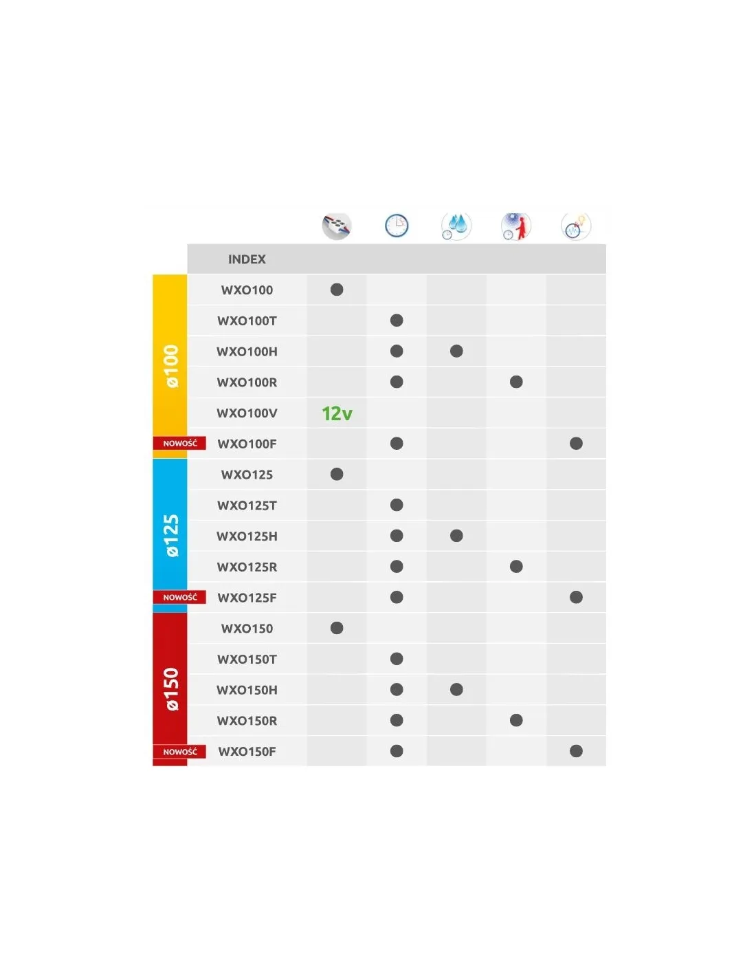 Wentylatory wyposażone w funkcję opóźnienia wyłączenia wentylatora. Wentylator uruchamiany i wyłączany jest włącznikiem ściennym będącym elementem instalacji elektrycznej budynku. Po wyłączeniu wentylatora włącznikiem ściennym jego wyłączenie nastepuje dopiero po upływie czasu ustawionego na potencjometrze układu sterującego wentylatorem. Opóźnienie wyłączenia jest regulowane płynnie w zakresie 3 min. – 30 min.