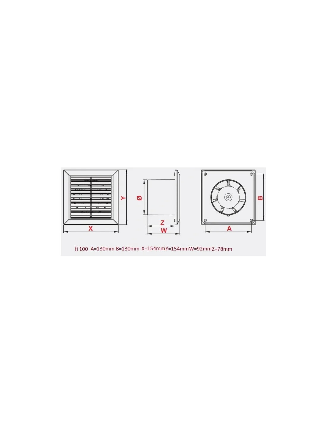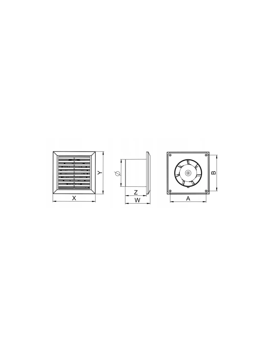 Wentylator ścienny, przeznaczony do montażu pionowego.