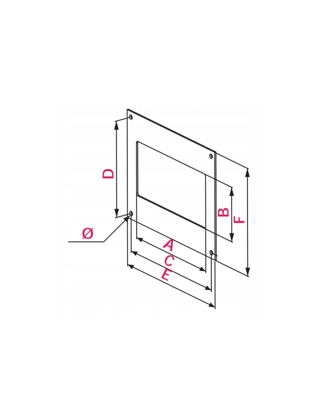 Rysunek techniczny i wymiary kołnierza przyściennego prostokątnego w [mm]: