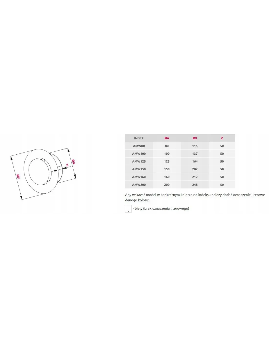 Anemostat metalowy wywiewny (AMW) może być wykorzystany do dystrybucji zarówno zimnego jak i ciepłego powietrza. Przeznaczony do montażu sufitowego i ściennego. Anemostat wykonany jest ze stali ocynkowanej malowanej proszkowo na kolor biały.
