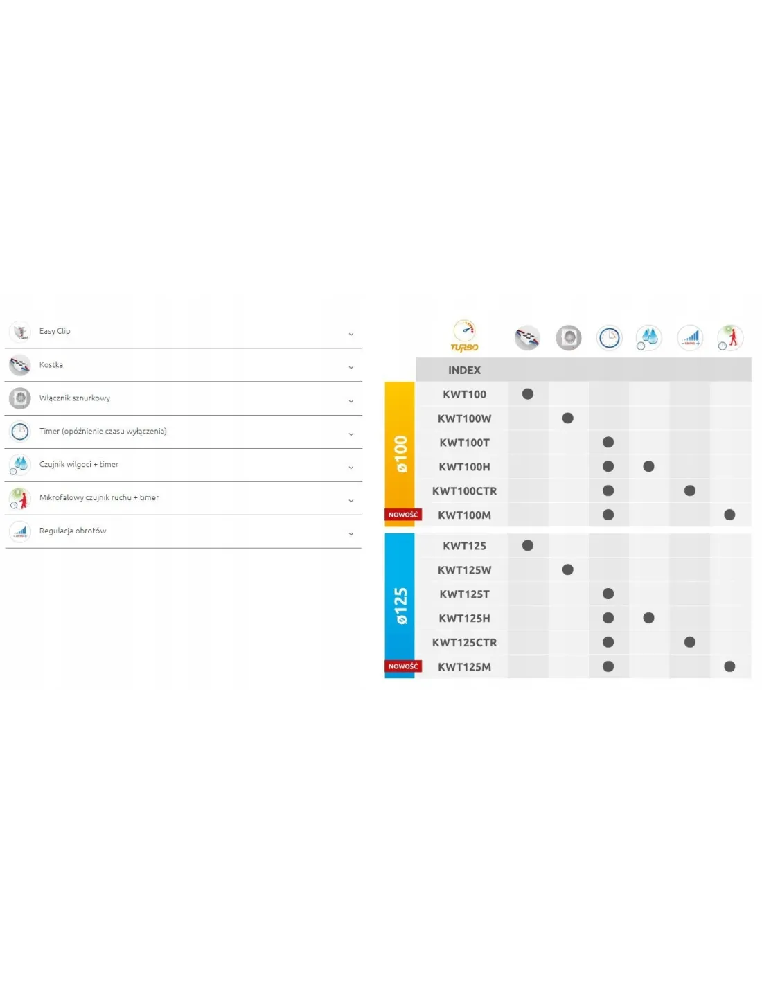 - Timer (opóźnienie czasu wyłączenia) - Wentylatory wyposażone w funkcję opóźnienia wyłączenia wentylatora. Wentylator uruchamiany i wyłączany jest włącznikiem ściennym będącym elementem instalacji elektrycznej budynku. Po wyłączeniu wentylatora włącznikiem ściennym jego wyłączenie nastepuje dopiero po upływie czasu ustawionego na potencjometrze układu sterującego wentylatorem. Opóźnienie wyłączenia jest regulowane płynnie w zakresie 3 min. – 30 min.