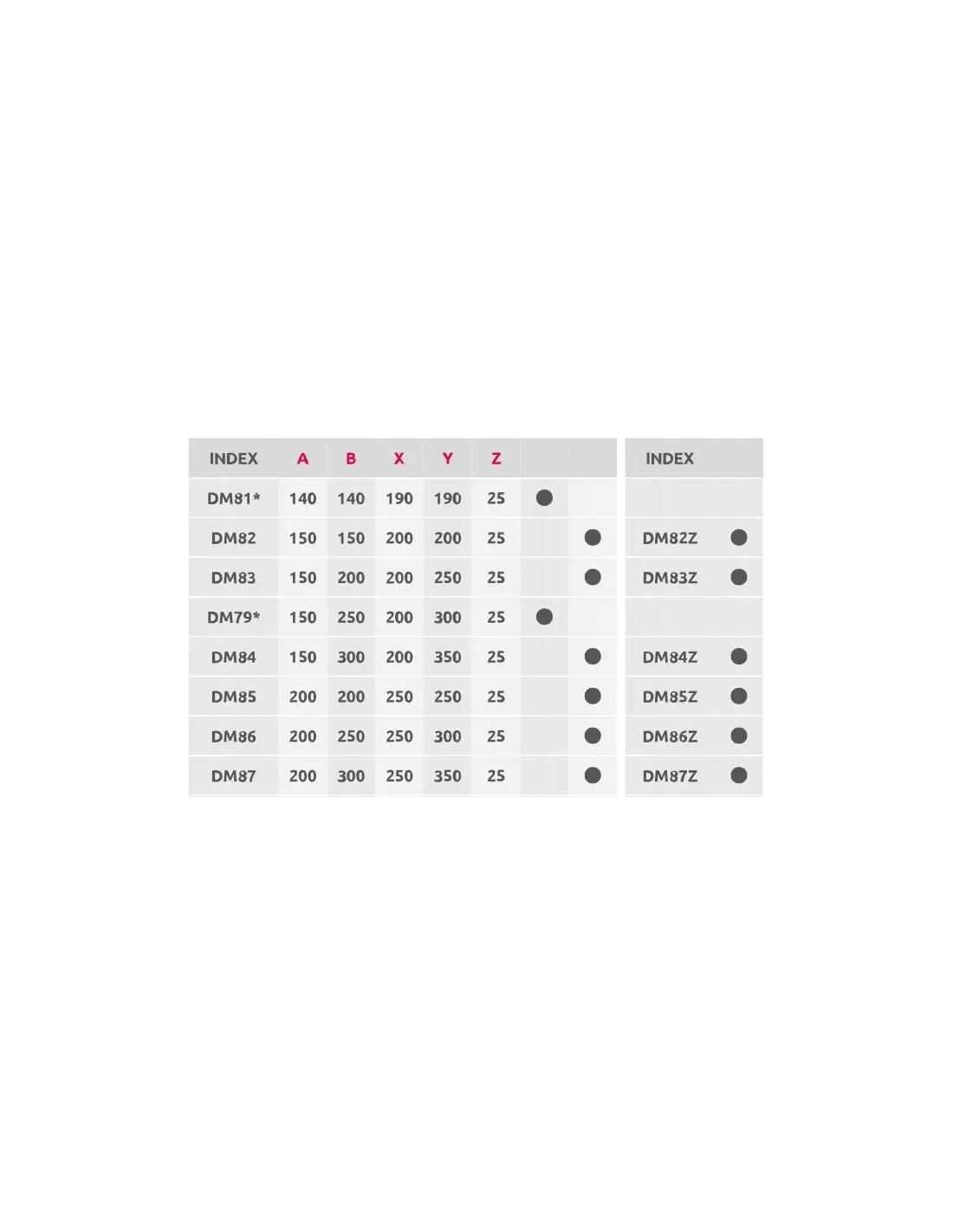 Metalowe drzwiczki rewizyjne dostępne są w wersjach: z blachy ocynkowanej malowanej proszkowo (indeksy DM) oraz z blachy wybłyszczanej (DMN) w rozmiarach od 140 x 140 mm do 600 x 600 mm o kształcie kwadratowym i prostokątnym.