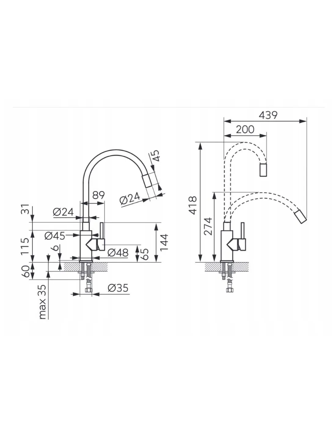 Zasięg wylewki [mm]: 150-350