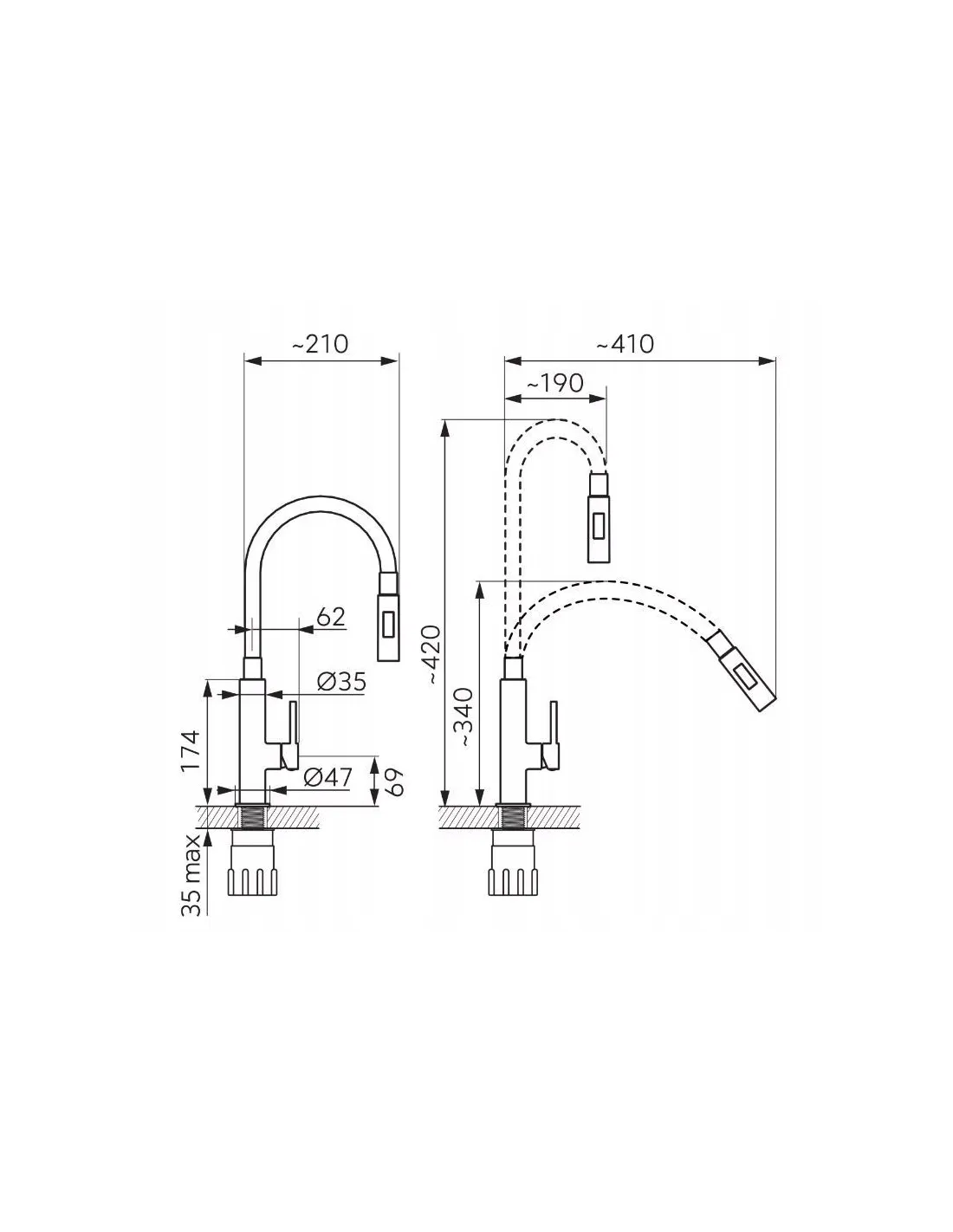 Zasięg wylewki [mm]: 190-410