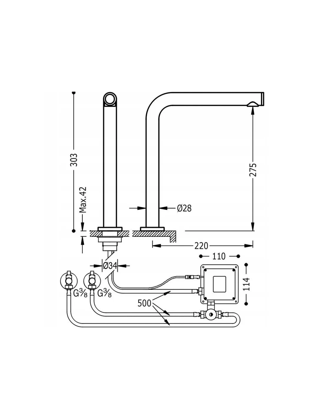 • zawiera dwustrumieniowy mieszalnik z giętkimi rurkami