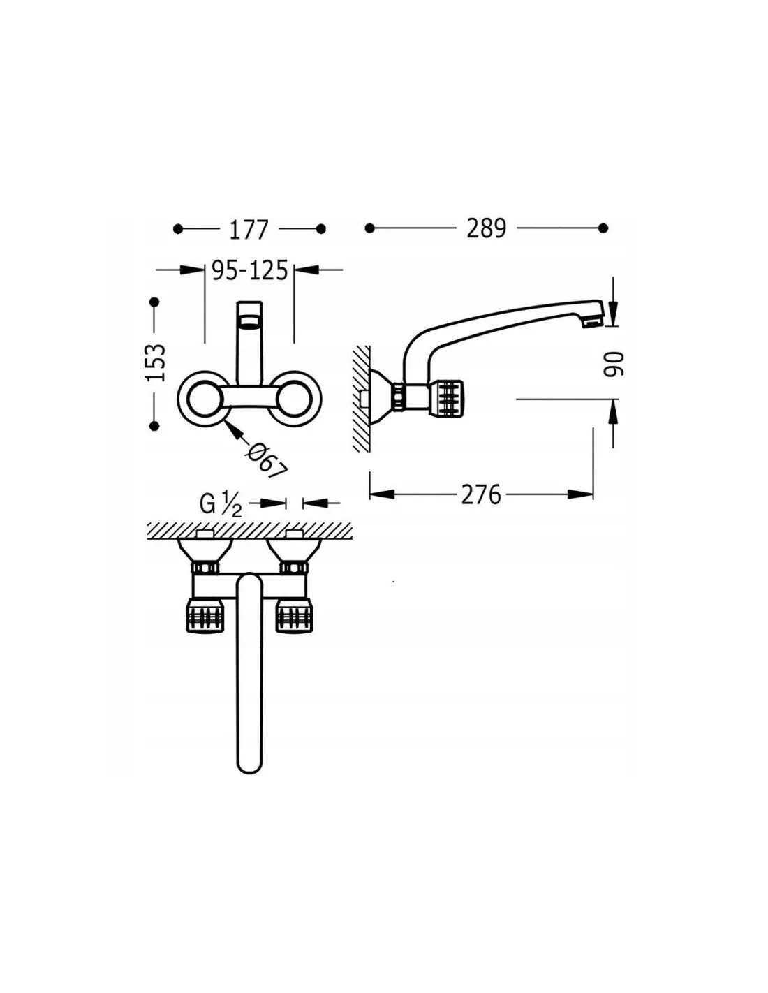 BATERIA KUCHENNA ŚCIENNA Z POKRĘTŁAMI CHROM TRES