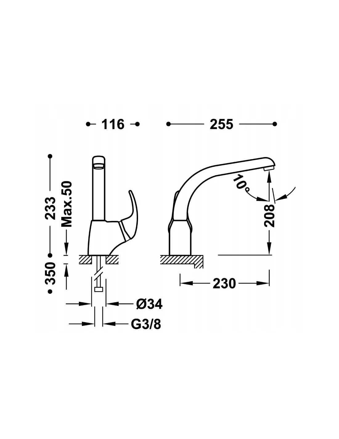 Z elastycznymi wężami zasilającymi G3/8.