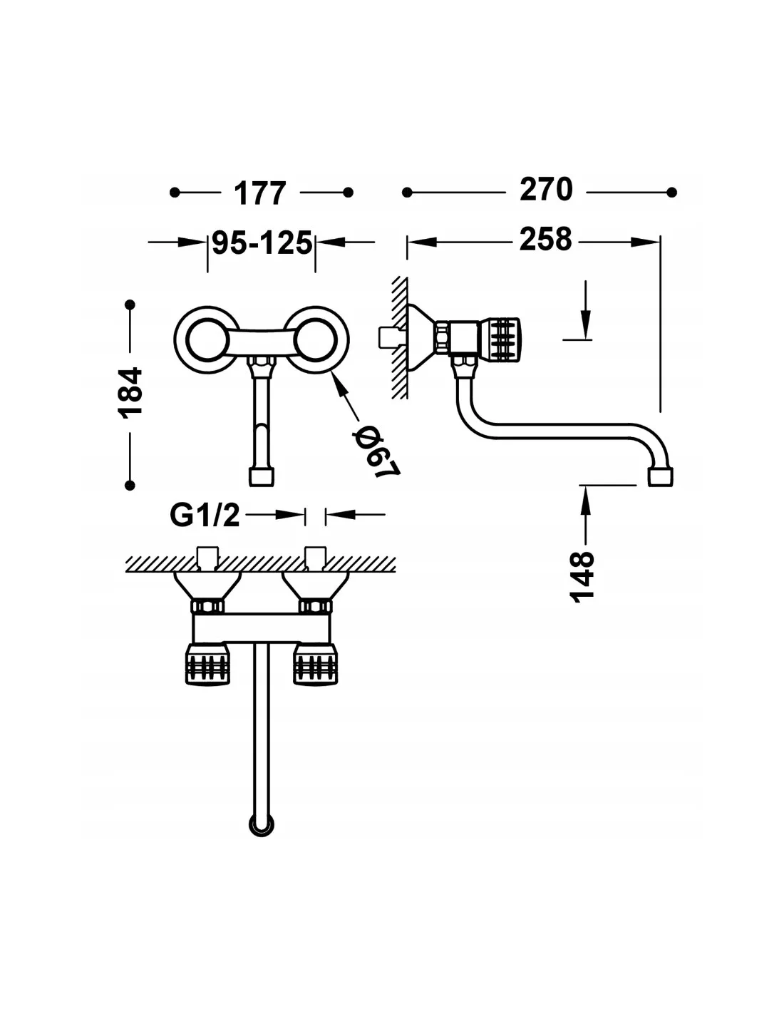 TRES Cocina Bateria dwuuchwytowa ścienna kuchenna 123210