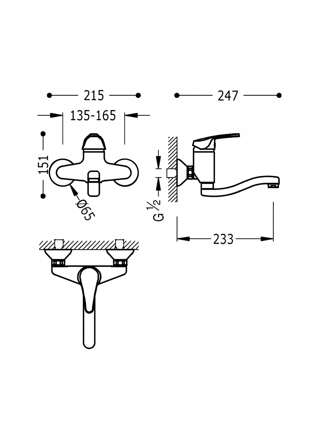 Z wylewką dolną. Odległość od ściany: 233 mm.