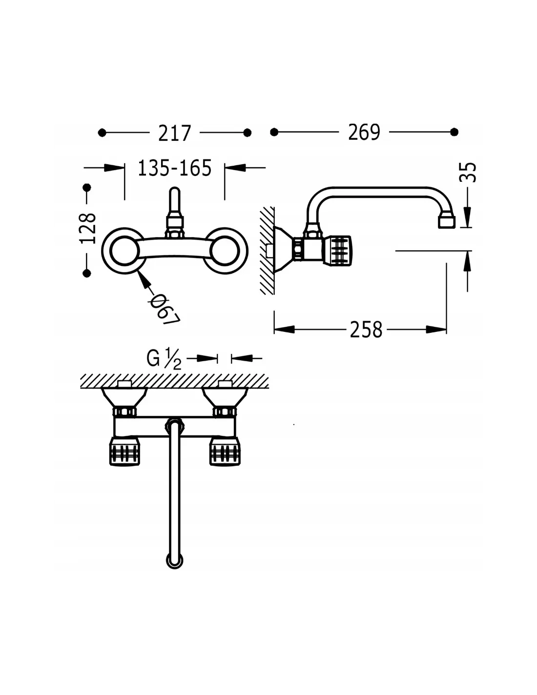 Z wylewką górną. Odległość od ściany: 258 mm.