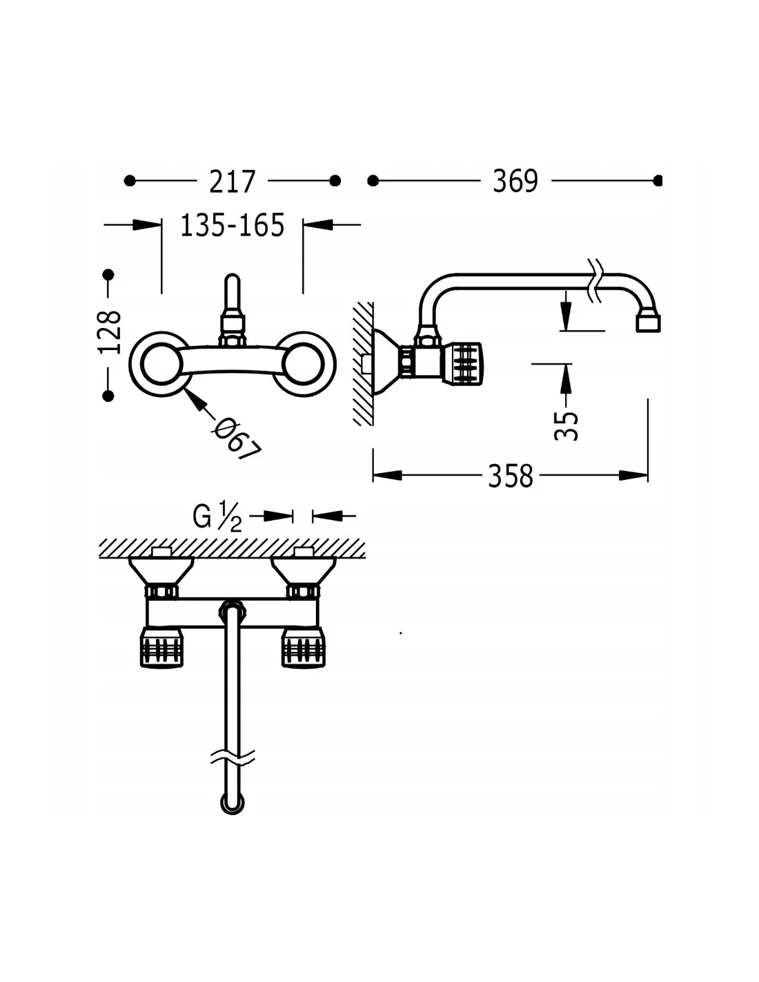 TRES Cocina Bateria dwuuchwytowa ścienna kuchenna 123330