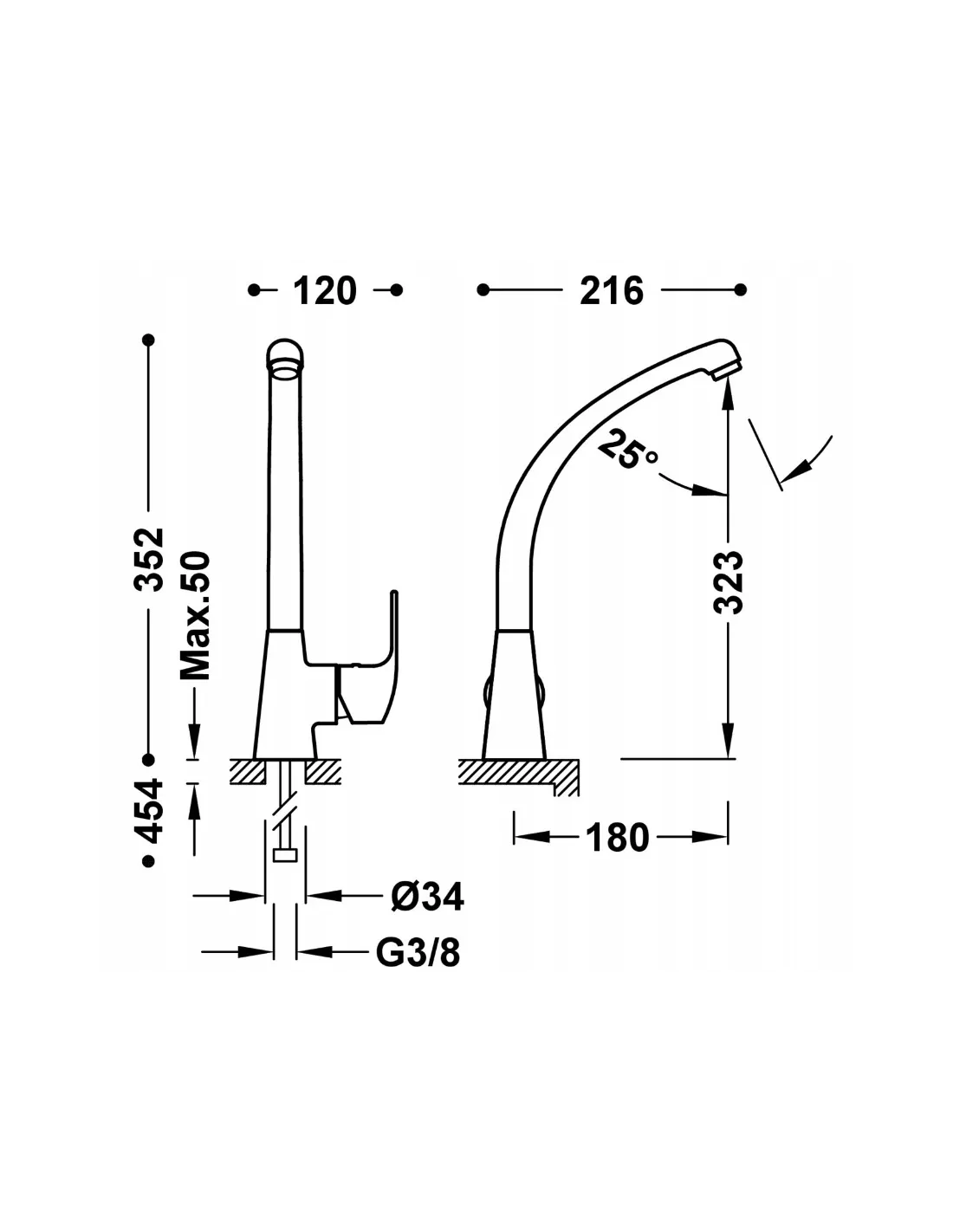 Z elastycznymi wężami zasilającymi G3/8.