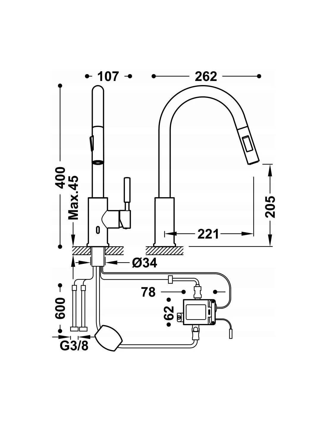 TRES Bateria kuchena z uchylaną wylewką matowe różowe złoto mat 23033502OPM