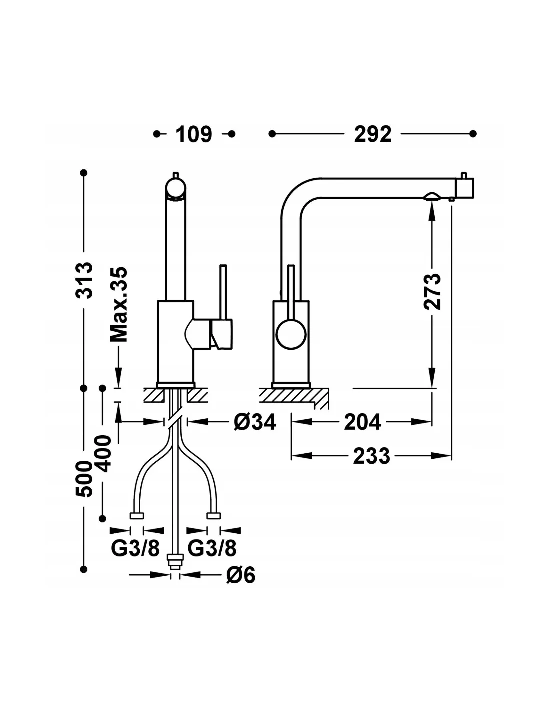 · Niezależne zamknięcie i regulacja przepływu.· Wężyki elastyczne G3/8.