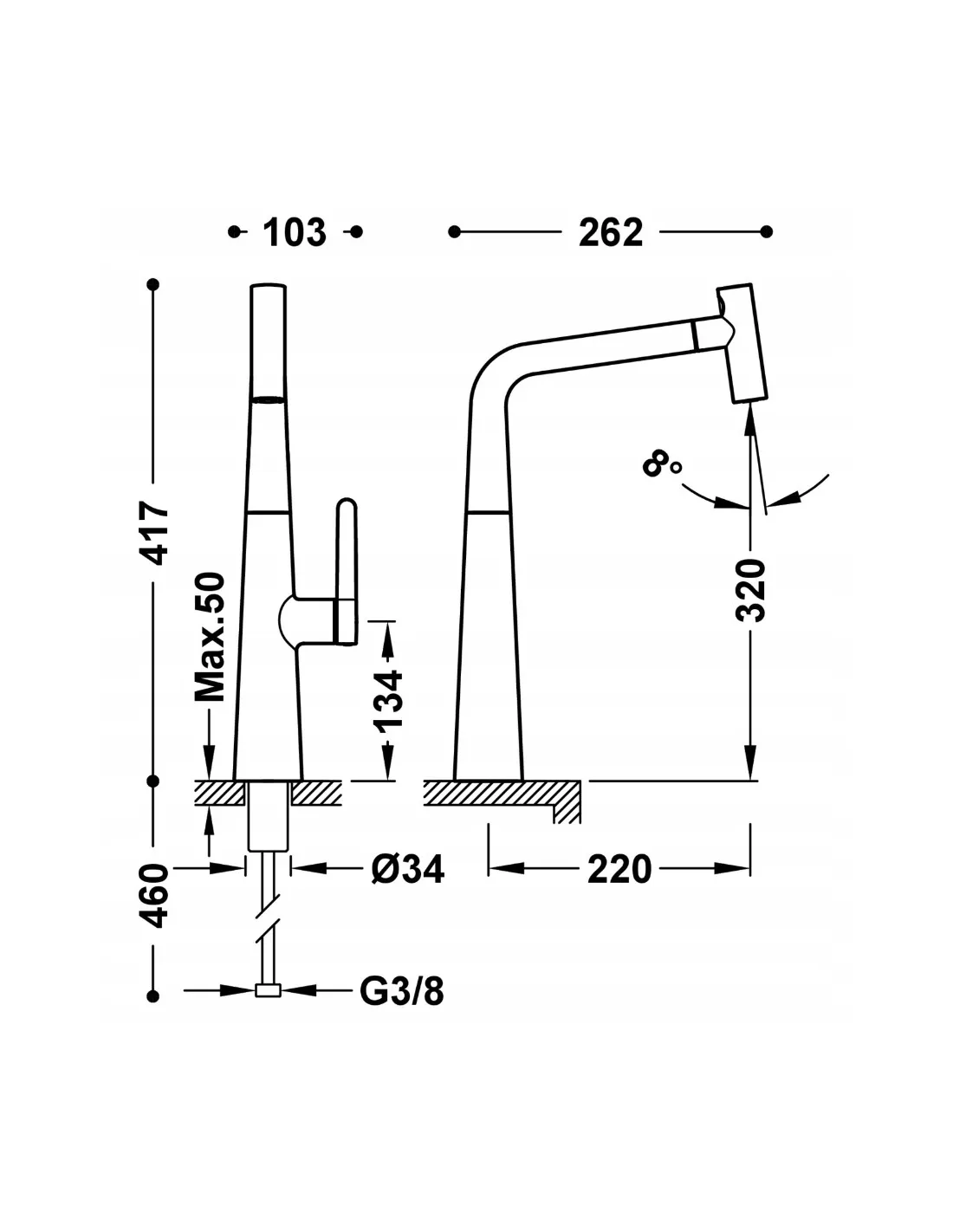 Z elastycznymi wężami zasilającymi G3/8.