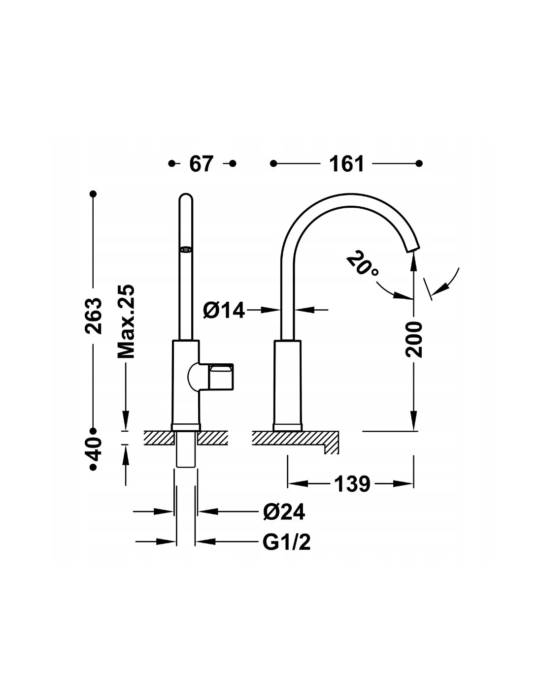 TRES Bateria kuchenna jednouchwytowa do wody filtrowanej 23050301