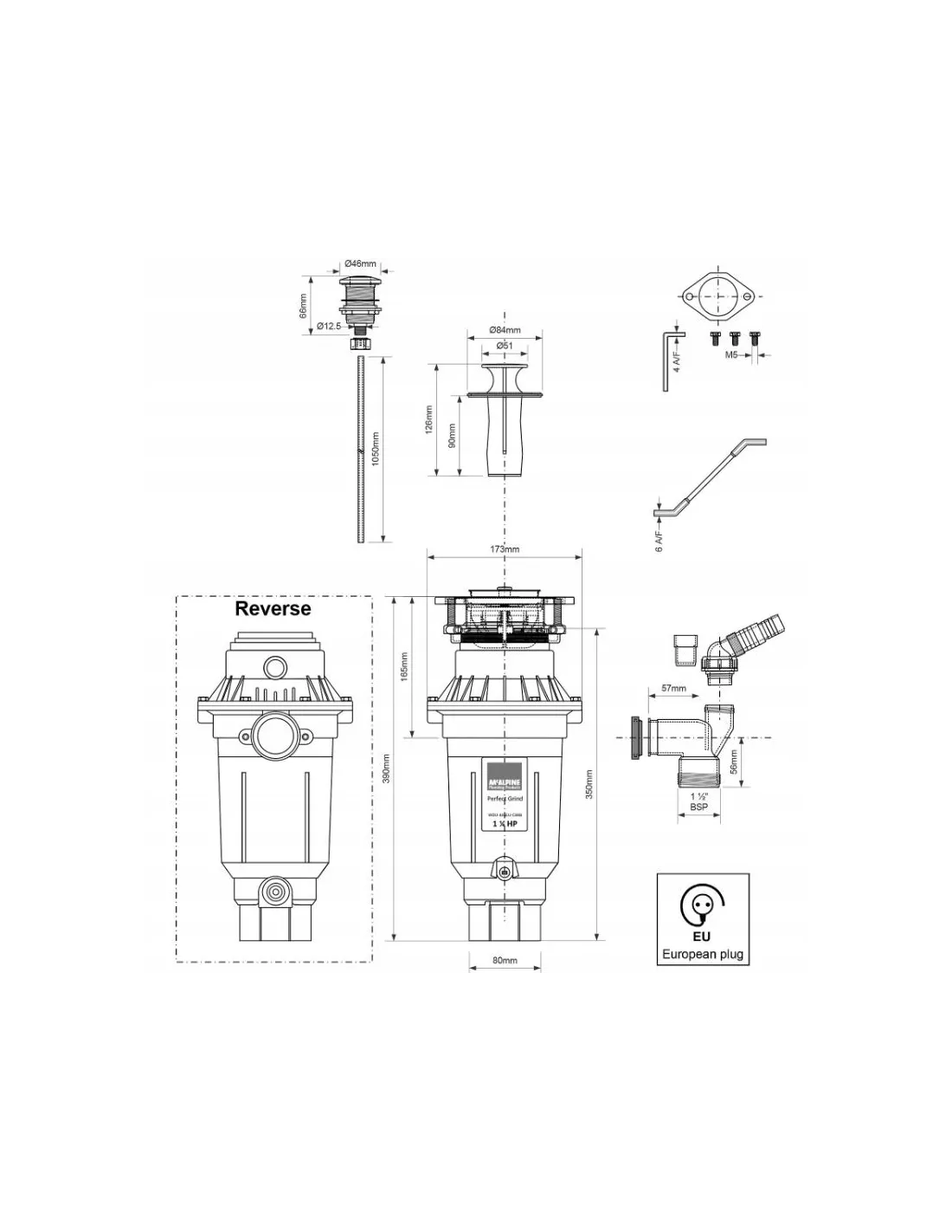 McALPINE ROZDRABNIACZ KUCHENNY młynek do odpadów Slim WDU-4ASEU-CARB