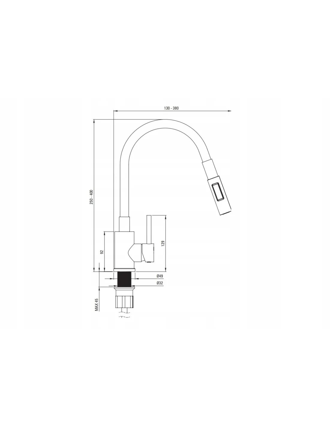 - Zasięg wylewki bateryjnej [mm]: 380