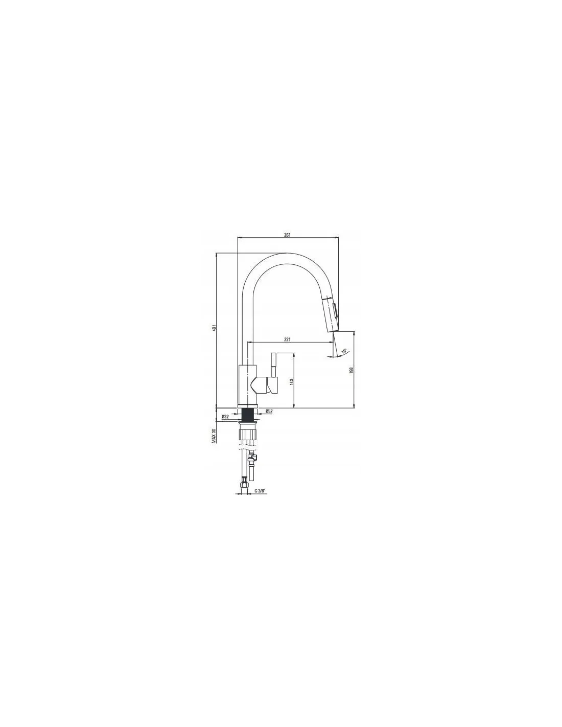 - Zasięg wylewki: 221 mm
