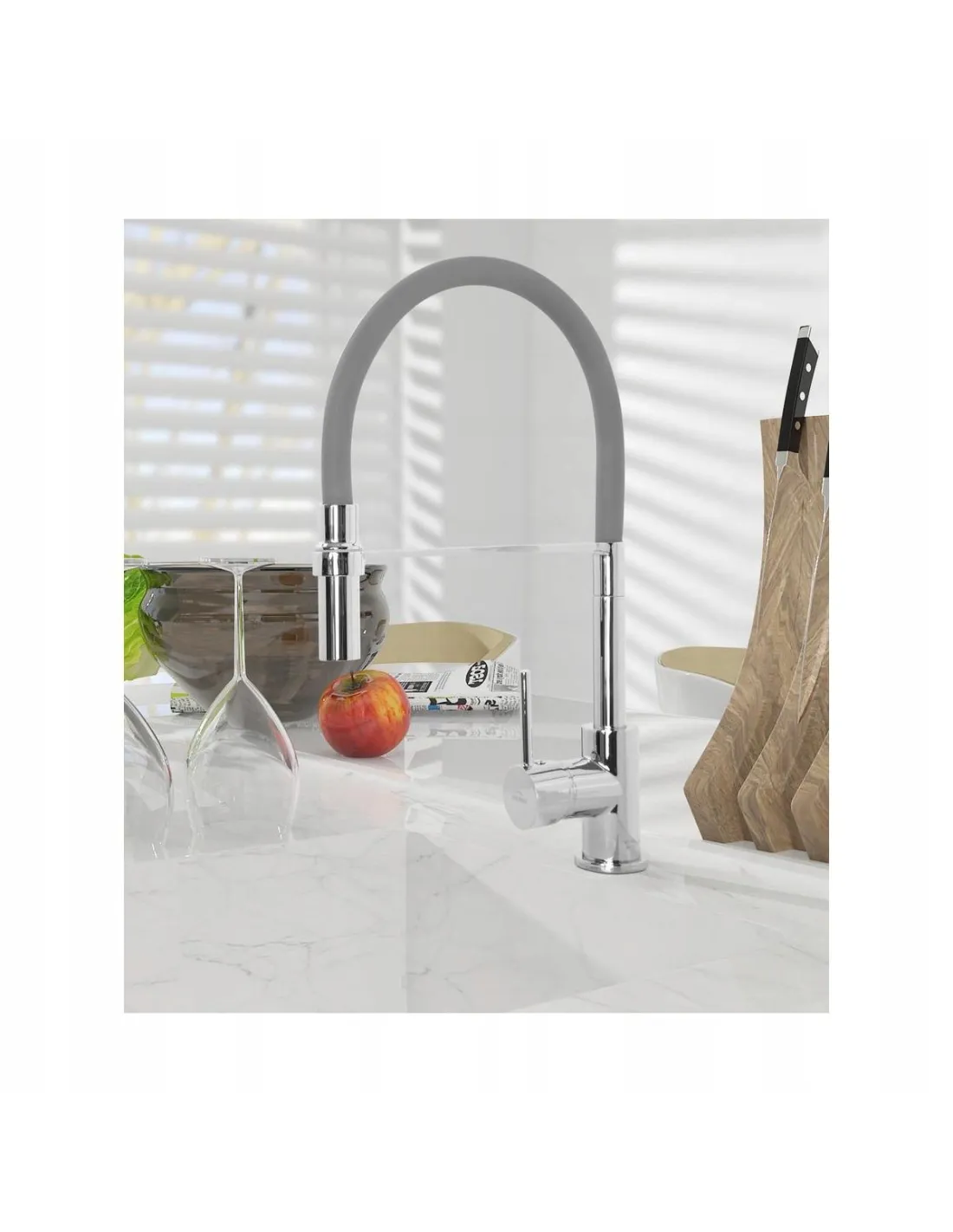 KAMELEON bateria zlewozmywakowa z wyciąganą elastyczną wylewką, szara