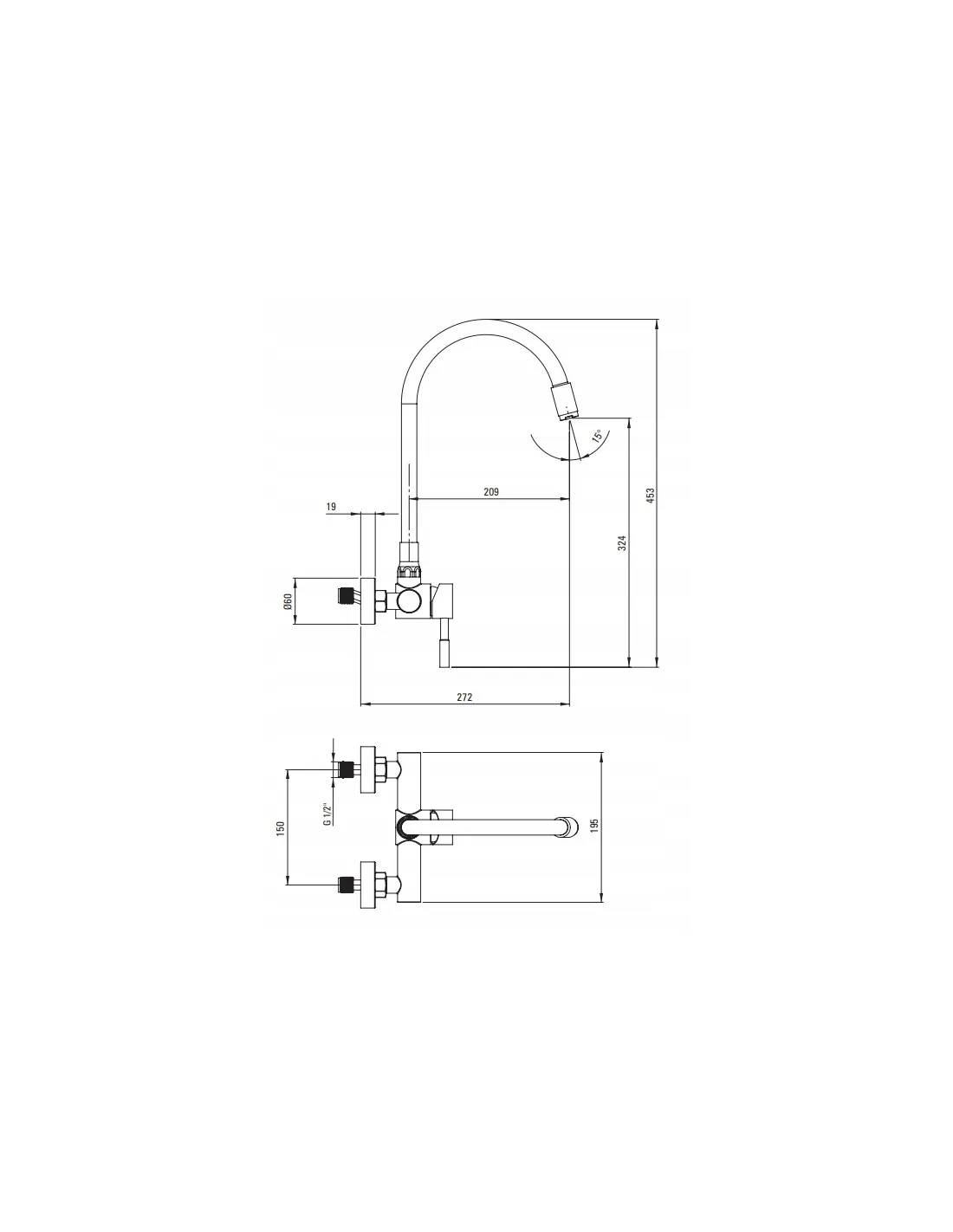 Bateria kuchenna ścienna z giętą wylewką