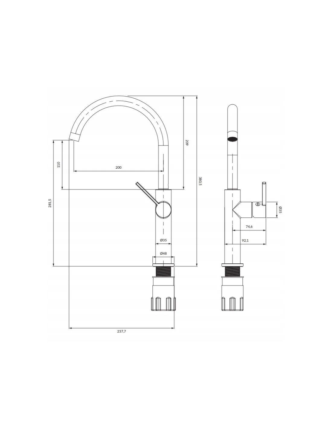 - zasięg wylewki: 20 cm