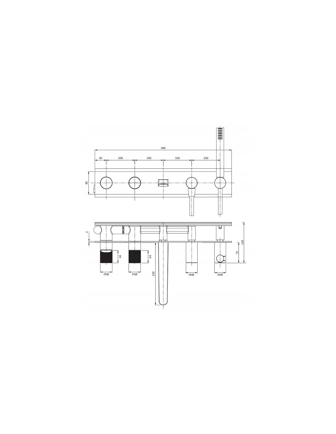 OMNIRES CONTOUR bateria 5-otworowa podtynkowa GLB CT8037-1GLB