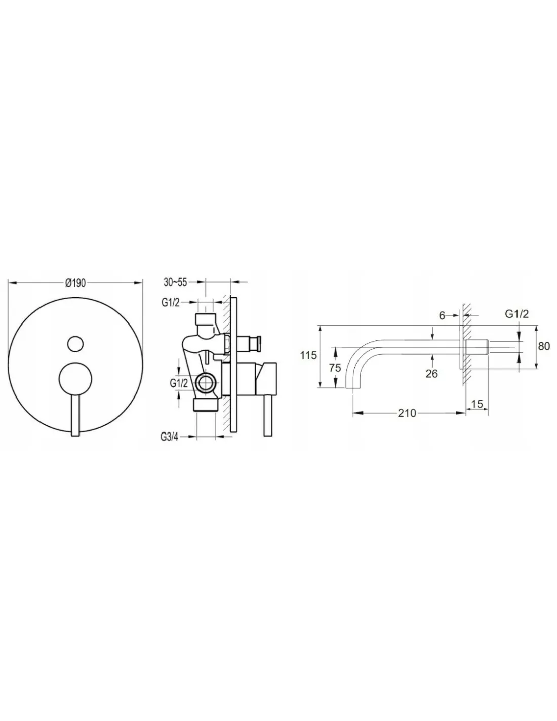 Minimalna głębokość w ścianie niezbędna do zabudowy baterii: 7 cm