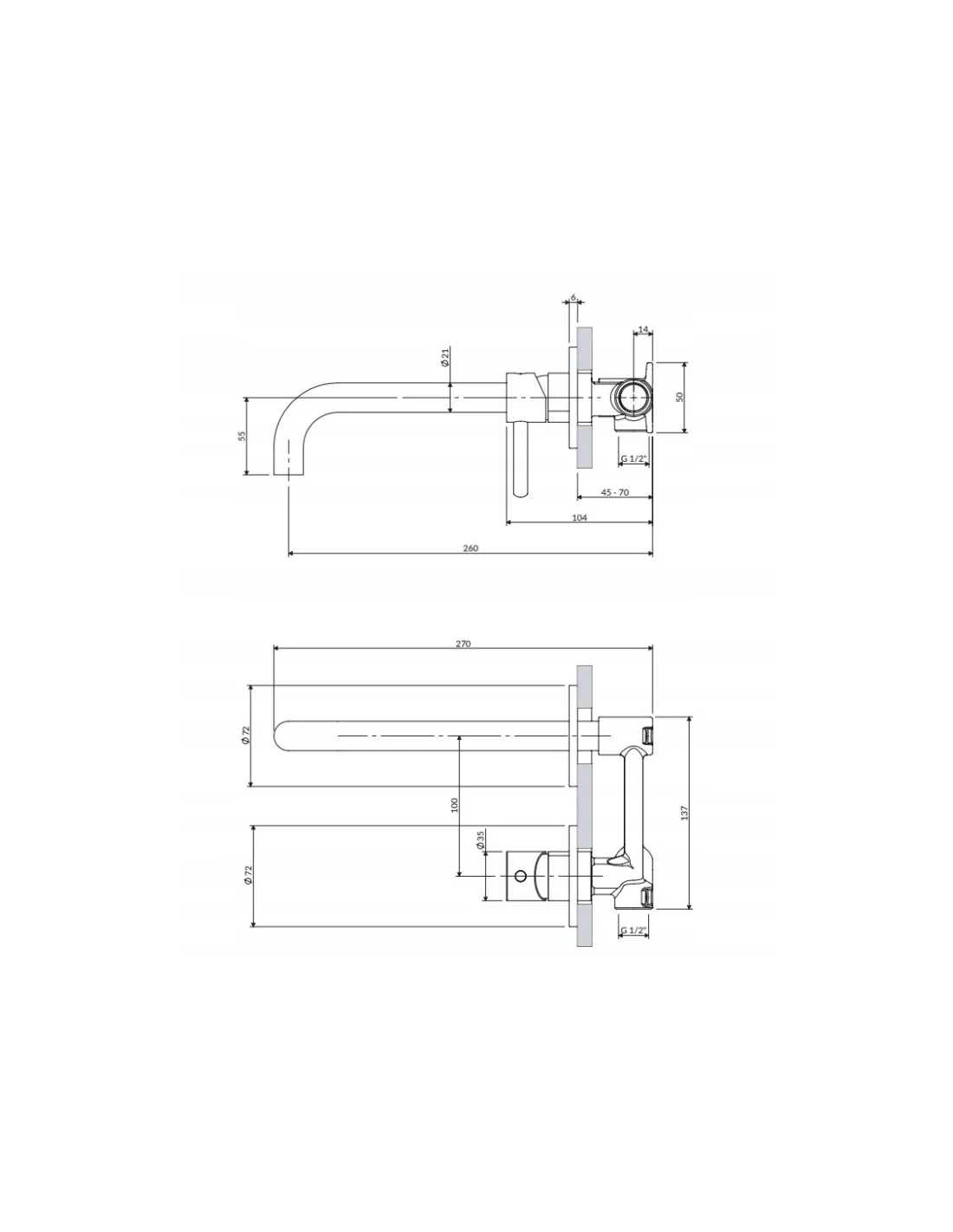- Zasięg wylewki od powierzchni płytek: 19-21,5 cm (zależny od głębokości montażu baterii w ścianie)