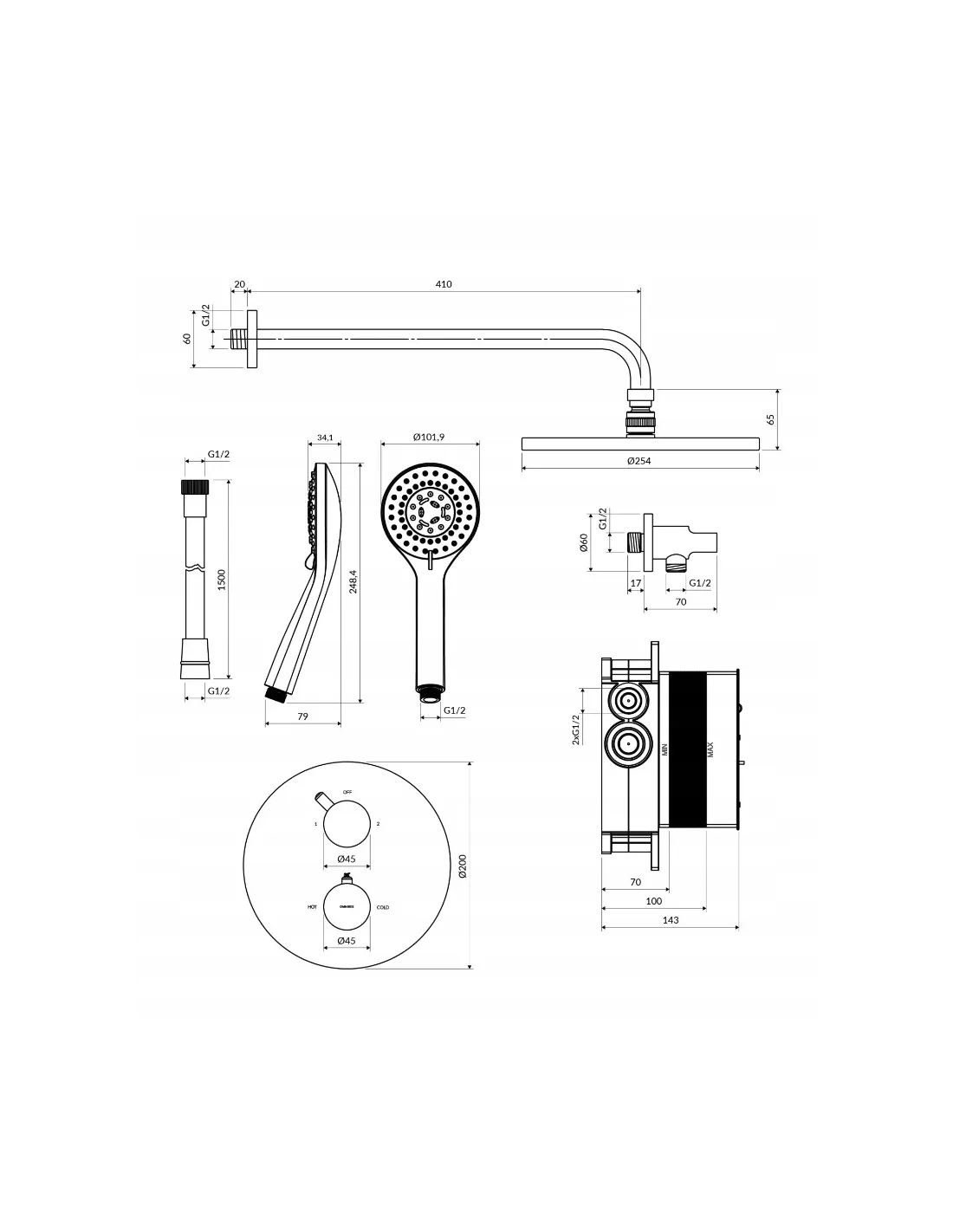 OMNIRES komplet natryskowy termostat złoto szczotkowane SYSYT05GLB